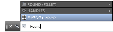コマンド ラインで、ブロック、ハッチング、画層、スタイルなどの名前の付いたオブジェクトを検索してから、これを選択することによってアクションを開始することができます。
