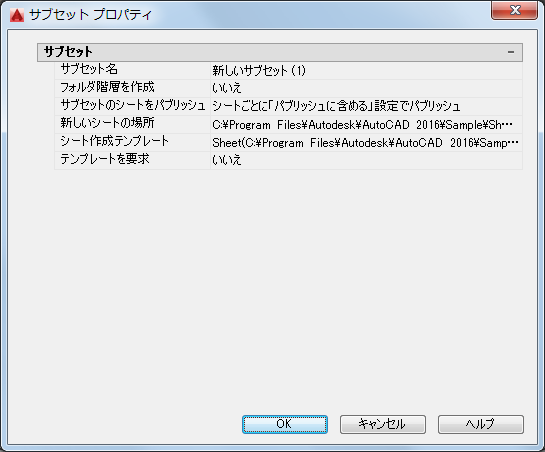 このサブセットの新しい図面ファイルを作成する場合に使用する図面テンプレート(DWT)ファイルとレイアウト名を指定します。