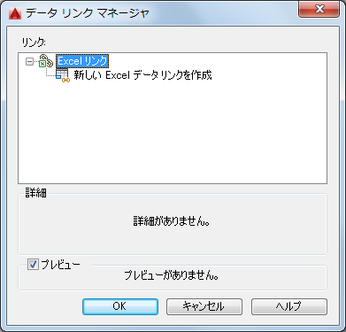 リンクされたデータが図面の表でどのようになるかのプレビューが表示されます。データ リンクを選択していないと、プレビューは表示されません。