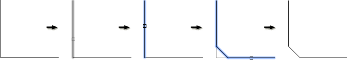 AMCHAM2D[2D 面取り]コマンドと AMFILLET2D[フィレット 2D]コマンドでは、面取りするコーナーまたはフィレットするコーナーの外観のプレビューが表示されるようになりました。面取りまたはフィレットの最初のオブジェクトを選択すると、選択したオブジェクトがハイライト表示されます。2 番目のオブジェクトの上にカーソルを移動すると、ハイライト表示され、このオブジェクトを選択した場合のコーナーの外観のプレビューが表示されます。