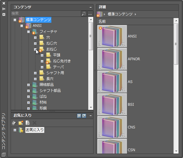 コンテンツ ライブラリを更新することで、コンテンツ ライブラリに既にある標準部品または標準フィーチャの外観が変わる場合があります。これは、一般的にコンテンツの更新で不具合を修正する場合に発生します。不具合のある標準部品または標準フィーチャを図面ファイルに既に挿入している場合は、作図領域で該当する標準部品または標準フィーチャをダブルクリックすると更新することができます。