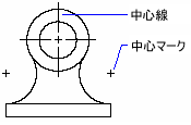 - 中心マーク。円または円弧の中心を示す小さな十字です。