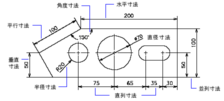 寸法は、オブジェクトの幾何学的な計測単位、オブジェクト間の距離または角度、フィーチャの X 座標および Y 座標を示します。AutoCAD ® では、長さ寸法、径寸法、角度寸法という 3 つの基本的な寸法を使用することができます。長さ寸法には、平行寸法、回転寸法、座標寸法などがあります。