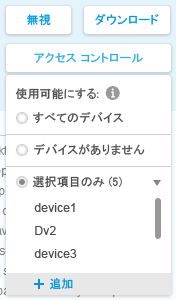 - [アクセス制御]メニューで、[すべてのデバイス]、[デバイスなし]、または選択したデバイスのリストを選択します。