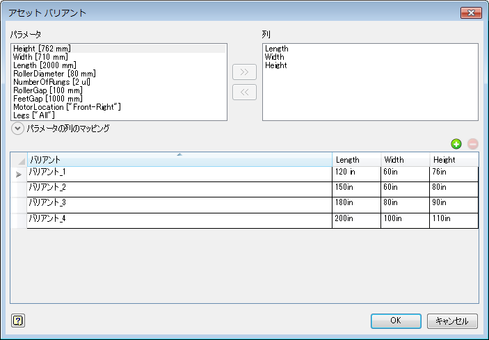 iLogic ルールをアセット バリアント パラメータとともに使用する際には、考慮すべきいくつかの事項があります。