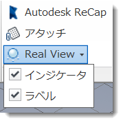 点群に Real View のインジケータおよび説明が含まれている場合、これらの表示のオン/オフを[Real View]ドロップダウン メニューで切り替えることができます。
