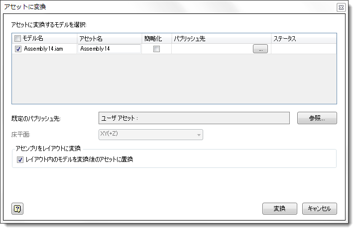 - 指定した場合、選択したモデルを新たに作成したアセットに置換する
