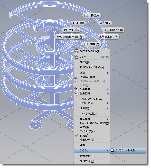 アセットを編集したり、アセットのコピーを作成する場合など、アセット ライブラリに配置されているアセットの位置を特定する必要がある場合は、レイアウト内でアセットを右クリックし、[ファクトリ] > [ライブラリ内を検索]の順に選択します。