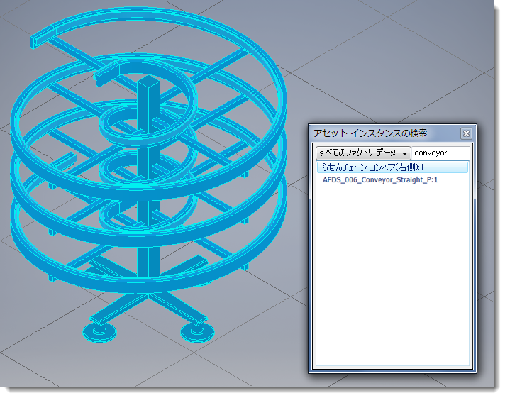 Factory Design Suite の検索機能を使用すると、レイアウトおよびアセット ライブラリ内の特定のアセットを容易に特定できます。