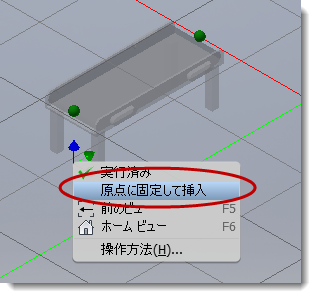 レイアウトの原点(0, 0, 0)にコンポーネントを自動的に配置して固定するには、次の手順を実行します。モデルに挿入点が定義されている場合は、挿入点がレイアウトの原点に位置合わせされます。