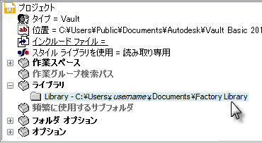 作成およびパブリッシュした新しいファクトリ アセットは、直接[ライブラリ]フォルダに追加できるようになります。Inventor プロジェクトの詳細については、Inventor ヘルプを参照してください。