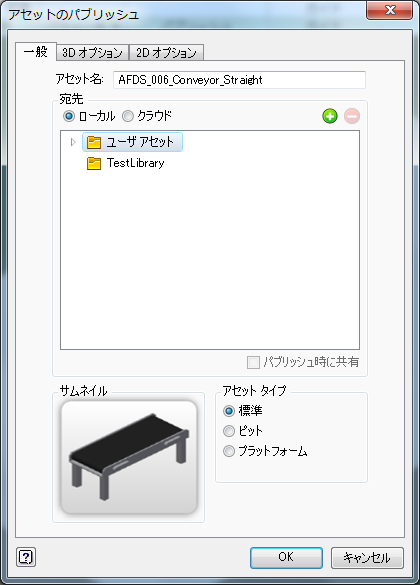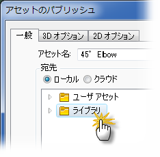 プロジェクトがアクティブな場合、プロジェクト ライブラリは、[アセットのパブリッシュ]ダイアログ ボックスに[ライブラリ]という名前で表示されます。
