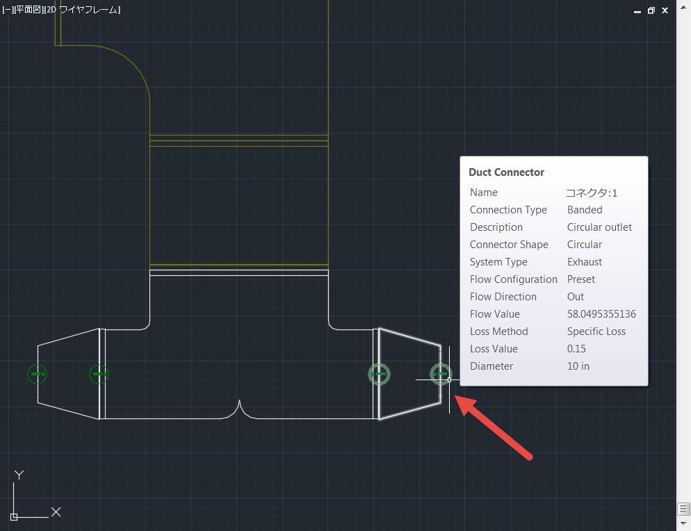 Inventor Factory の BIM (MEP)コネクタを使用して、ファクトリ アセットを作成した後は、AutoCAD Factory でコネクタに関する情報を表示できるようになります。