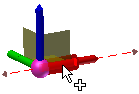 - 次に、座標軸の接合点の赤い球をクリックします。赤い球が緑色の点に変わります。マウスを動かすにつれて、座標系がコンポーネントとともに移動します。