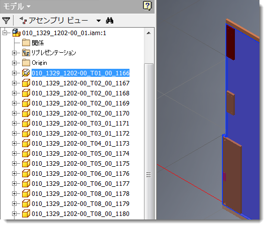 - モデル ブラウザで、インポートしたアセンブリの横にある[+]をクリックします。