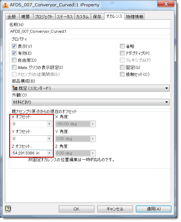 注: [Z オフセット]は、選択した接地面を表すため、変更する必要はありません。