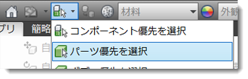 - メニュー バーで、選択の優先度を[パーツ優先を選択]に変更します。