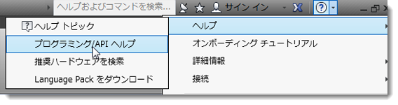 - [ヘルプ](Inventor の[?]ドロップダウン メニュー)をハイライト表示します。
