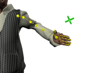 HumanIK の一般的な用途の多くには、キャラクタの手足が特定のポイントに届くように、または特定の時間に特定の項目と相互に作用するように、アニメーションを徐々に調整することが含まれます。たとえば、ドアのノブをつかむために手を伸ばしているキャラクタです。