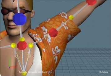 この図では、HIKRealisticShoulder プロパティが有効になり、値が 1.0 に設定されています。腕が回転するときに、回転の 100% が鎖骨のボーンに移動し、モデルの肩が上に動きます。 |