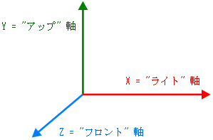 フロント軸の正の方向はスクリーンに向かう方向ではなく、スクリーン手前に向かう方向であることに注意してください。