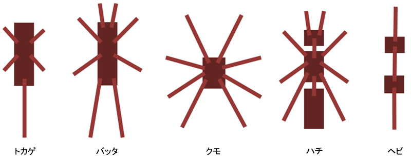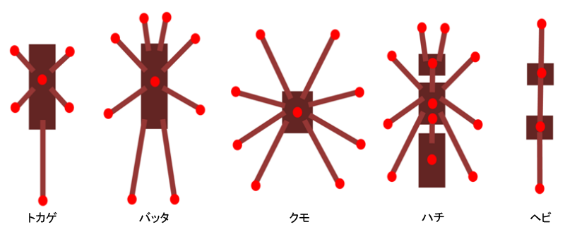 コードを作成する前に、チェーンとセクションを使ってクリーチャーの略図を書くことをお勧めします。サンプルに含まれているクリーチャーの略図を以下に示します。