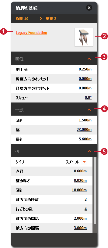 橋脚の基礎を選択すると、そのアセット カードが表示されます。