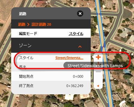舗装排水溝フィーチャは、主に道路サーフェスの下に配置されます。これらを表示するには、道路サーフェスの下にナビゲートするか、道路サーフェスを透明にします。