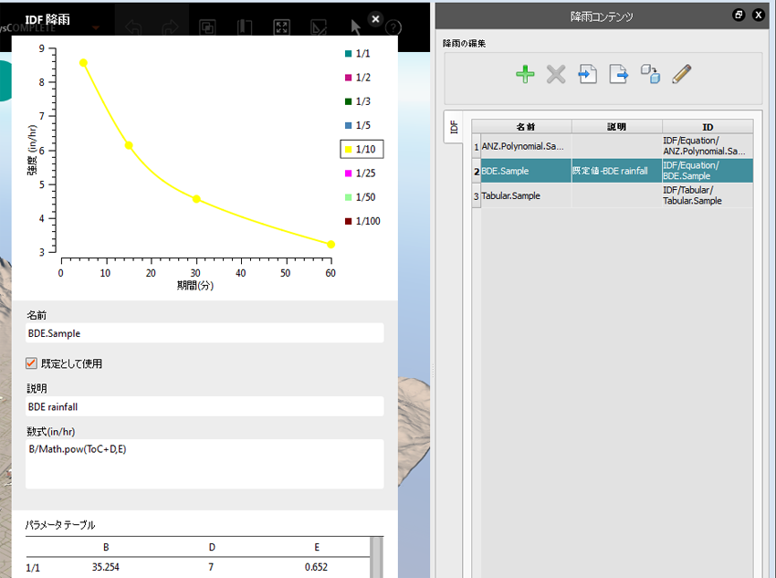 必要に応じて、これらの式を変更したり、名前を変更することができます。また、降雨データを読み込んで、独自の降雨量曲線を作成することもできます。