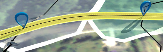 - 流域解析を使用して、河川と道路が交差する位置を識別します。