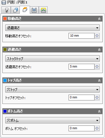 移動高さは、工具パスの始点への動線上で工具が早送りする最初の高さです。