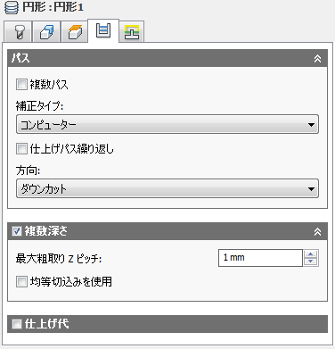 最大切込みピッチ: 仕上げ切込みピッチなしで表示