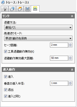 進入が進入からツールパスに移動するときに円滑化される垂直円弧の半径です。