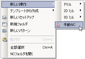 [新しい操作]コンテキスト メニューから[手動 NC]にアクセスする