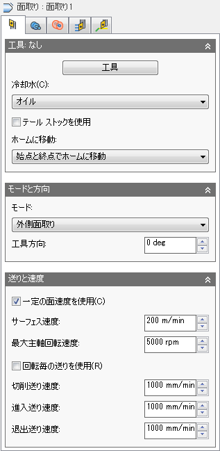サーフェス上のツールの速度を、スピンドル速度として表されます。