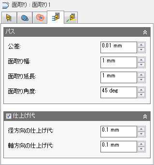 面取りの(追加)の幅です。面取りされていないエッジの場合、これは面取りの最終的な幅です。
