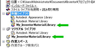 - My_InventorMaterialsLibrary.asklib を InventorMaterialLibrary.adsklib に名前を変更します。