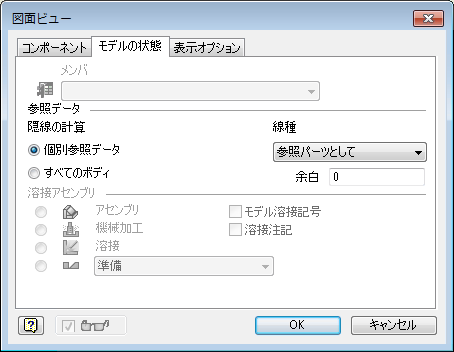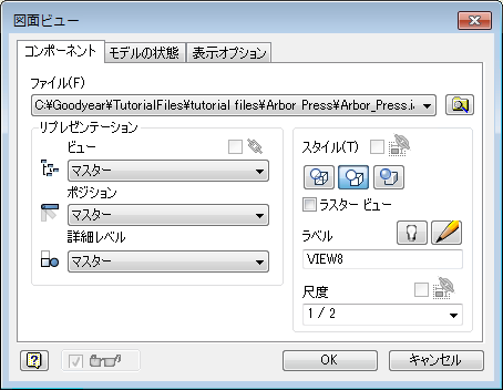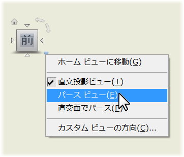 図面ビューの作成には、正投影が既定で使用されます。パース投影を使用するには、ベース ビューを作成するとき、またはベース ビューまたは独立した投影ビューを編集するときに、ViewCube を右クリックし、[パース]をクリックします。