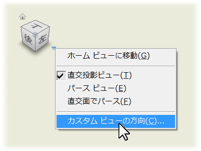 ViewCube を右クリックし、[カスタム ビューの方向]をクリックして、カスタム ビュー環境に移行します。次に、カスタム ビューの方向を指定します。