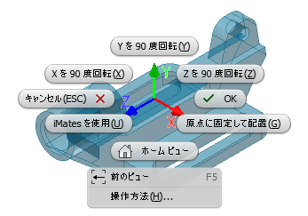 新しいアセンブリ アプリケーション オプションは、最初に配置されたコンポーネントを原点で固定するかどうかを指定します。この新しいオプションは、既定ではオフになっています。コンポーネントを原点に固定するには、右クリック メニューを使用します。メニューには、コンポーネントをアセンブリ内に配置する前に、X、Y、または Z 軸を中心に 90 度の増分単位でコンポーネントを回転する新しいオプションが含まれています。
