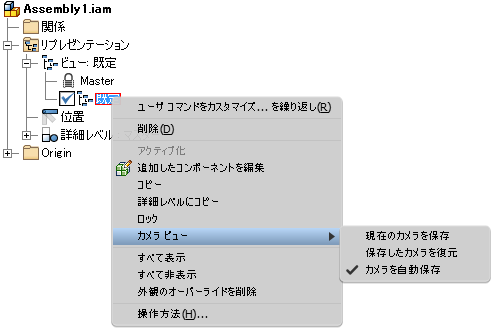 ビュー リプレゼンテーションの右クリック メニューの新しいコマンドを使用すると、カメラの設定を簡単に保存し、復元することができます。