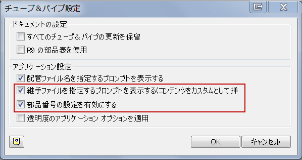 チューブ&パイプ環境内でダイアログ ボックス オプションが更新されました。