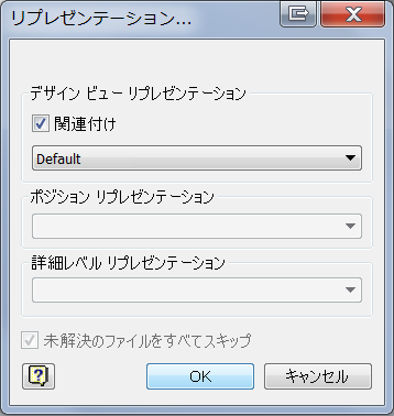 新しい[リプレゼンテーション]ダイアログ ボックスを使用して、現在のデザイン ビューと関連付けを変更できるようになりました。この新しいダイアログ ボックスにアクセスするには、プレゼンテーションのモデル ブラウザ内で、[分解]ノードを右クリックし、[リプレゼンテーション]を選択します。