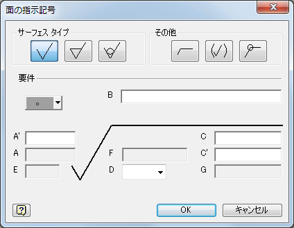 [要件]フィールドのさまざまなレイアウトを利用できるようになりました。[面の指示記号]ダイアログ ボックスのレイアウトが、現在の製図規格に対応しました。