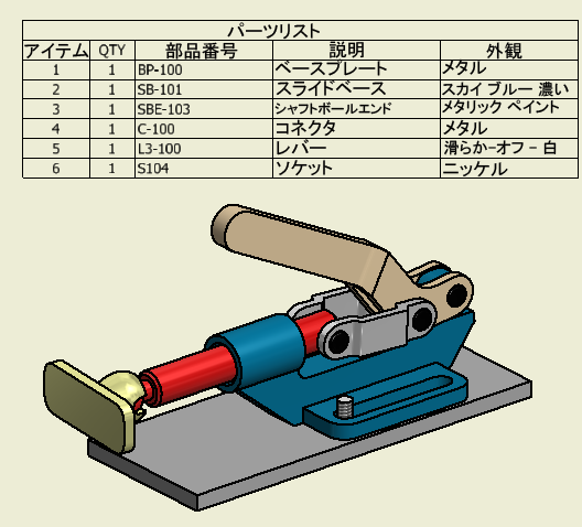 パーツ一覧、穴、履歴、または一般テーブルを分割し、テーブルのセグメントを図面シート上の目的の場所に再配置することができます。
