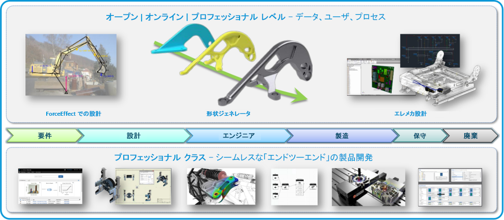 ForceEffect を使用すると、設計のコンセプト段階で、自由物体図を作成して、シミュレーション計算やエンジニアリング計算を開発し、設計の実行可能性を特定できます。