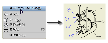 引出線付きの図面注記を 1 つの手順で位置合わせできるようになりました。図面で、位置合わせする注記を選択します。右クリックして、メニューから[位置合わせ]