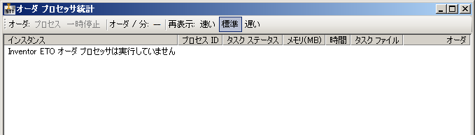 - 処理のステータスを表示します。タスクごとの使用されるメモリの量、時間、およびオーダ数を示します。