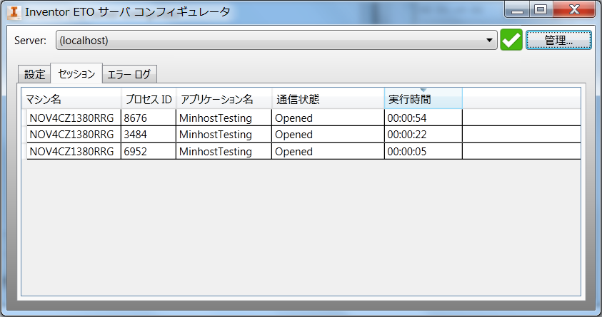 [セッション]タブは、サーバ上で実行中の現在のセッションに関する情報を表示します。データは、セッションの開始と終了で自動的に更新されます。セッションを終了するには、右クリックして[セッションを終了]を選択します。