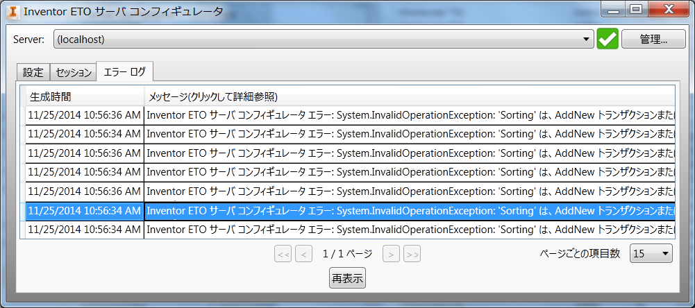 [エラーログ]タブは、Intent サービスのエラーのログを表示します。データを更新するには、[更新]をクリックします。エラーは降順でソートされます。エラーをクリックして展開します。